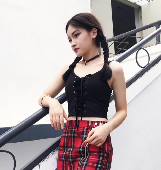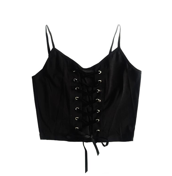 Fashion & Sexy black lace up crop top.