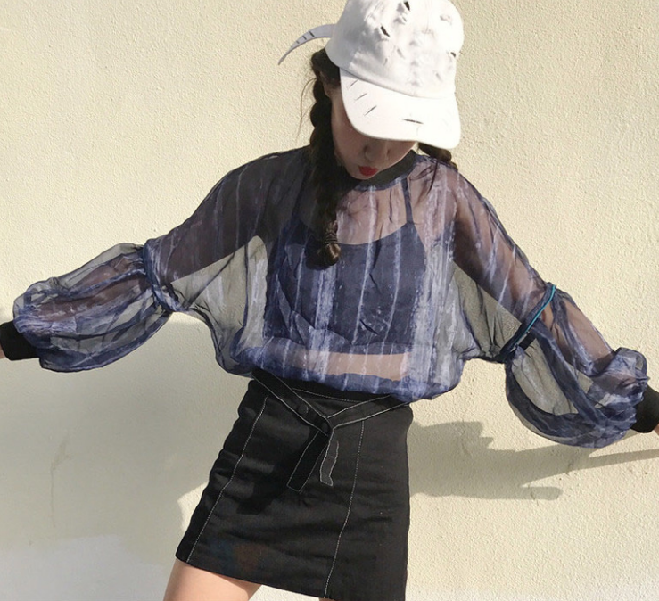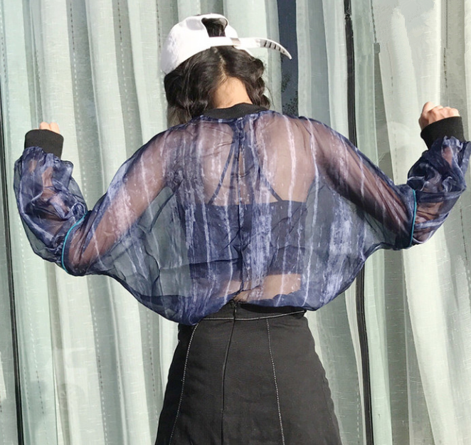 Fashion & Harajuku see through rash guard long sleeve chiffon T-shirt.