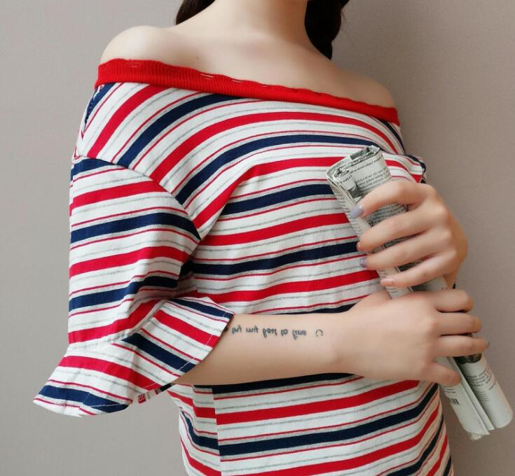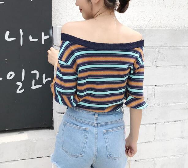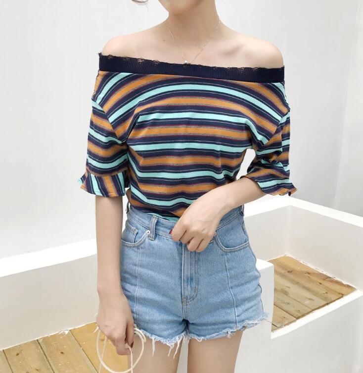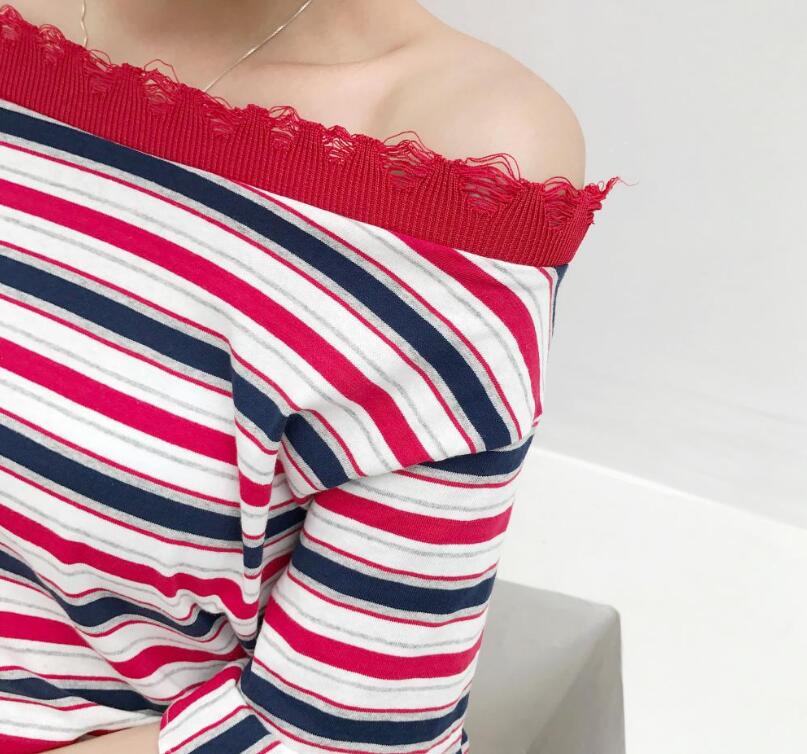 Fashion & Harajuku off shoulder striped flare sleeve t-shirt.