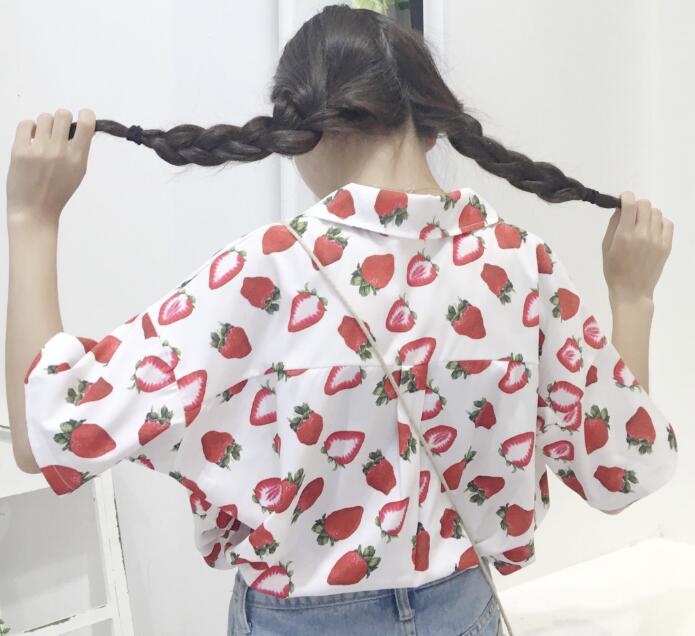 Fashion & Harajuku strawberry printed short sleeve blouse.