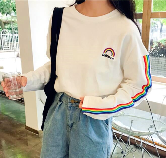 Harajuku & Fashion rainbow long sleeve T-shirt.