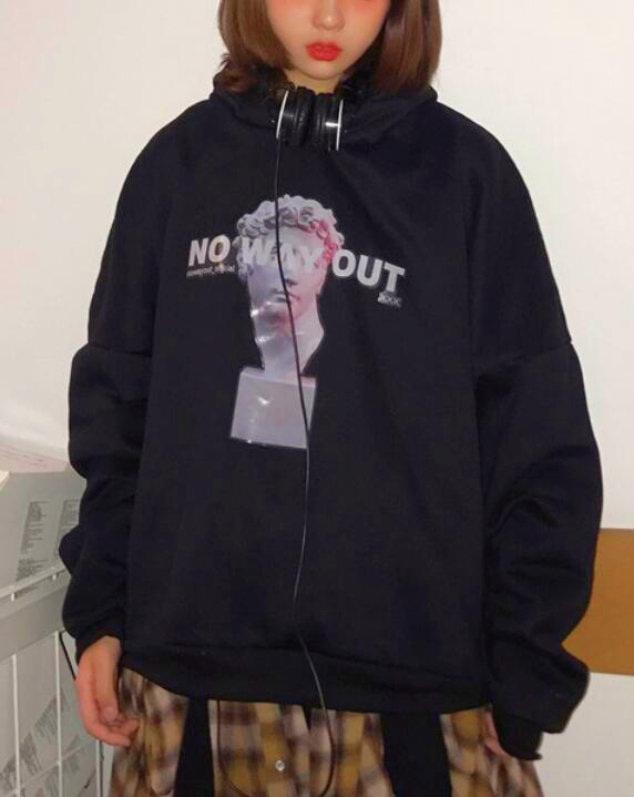 Vaporwave & Harajuku NO WAY OUT printed hoodie sweatshirt.