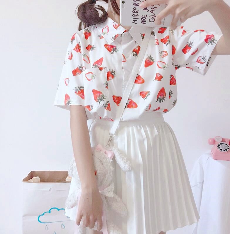 Fashion & Harajuku strawberry printed blouse.