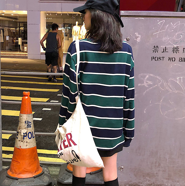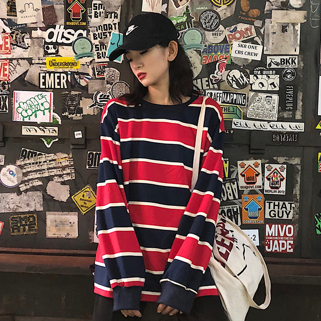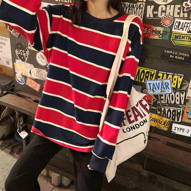 Fashion & Harajuku stripe long sleeved T-shirt, 2 colors.