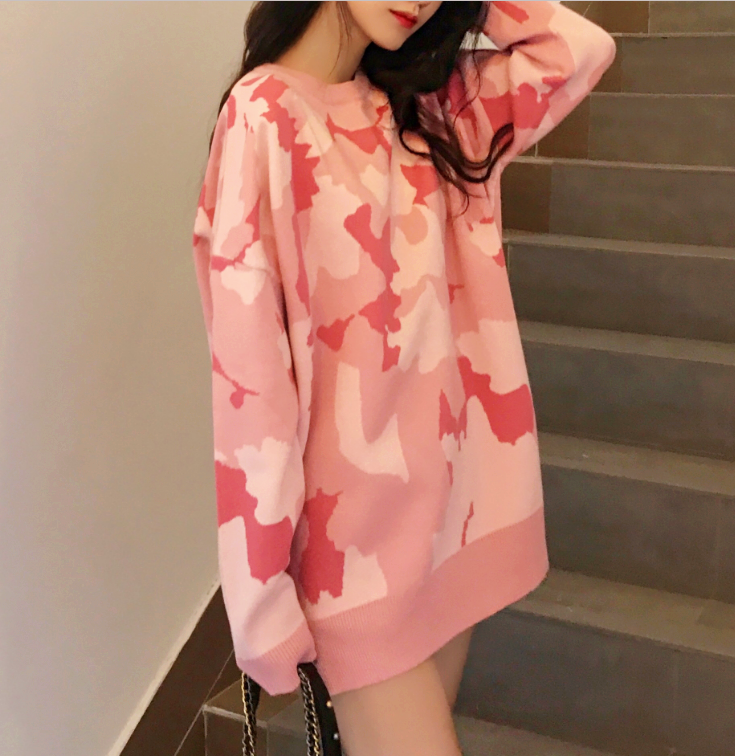 Sweet & Harajuku women pastel pink camouflage pullover knitted sweater.