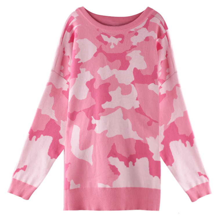 Women Pastel Pink Camouflage Pullover Knitted Sweater