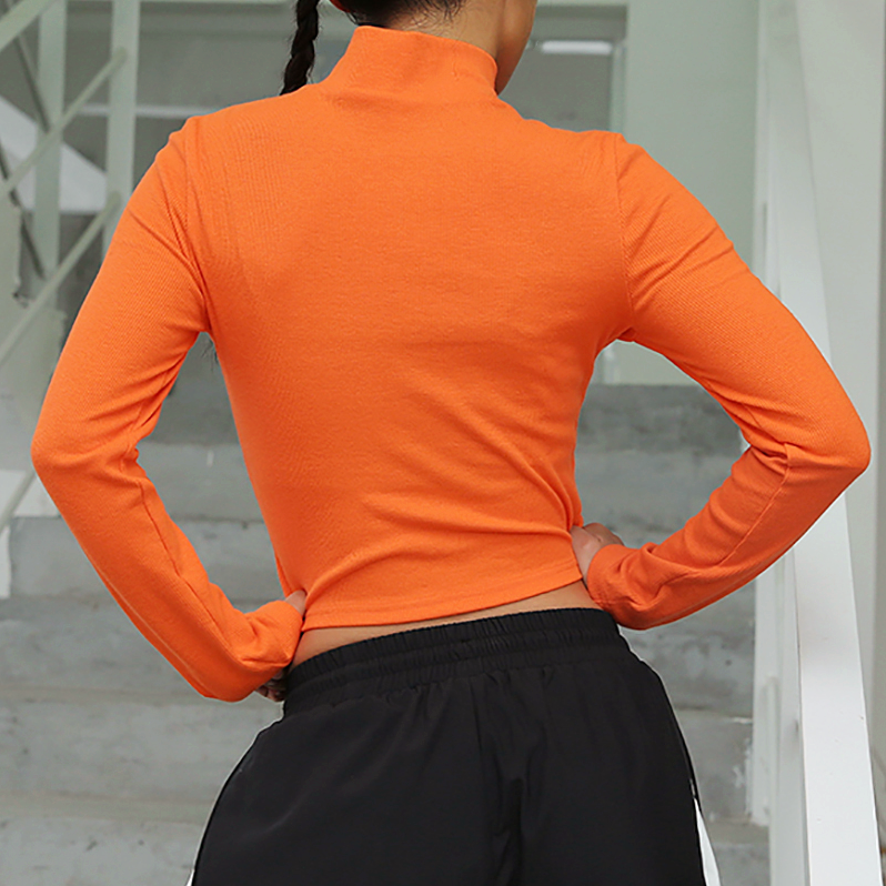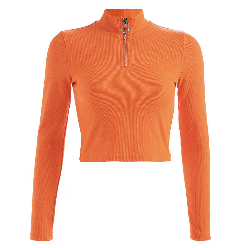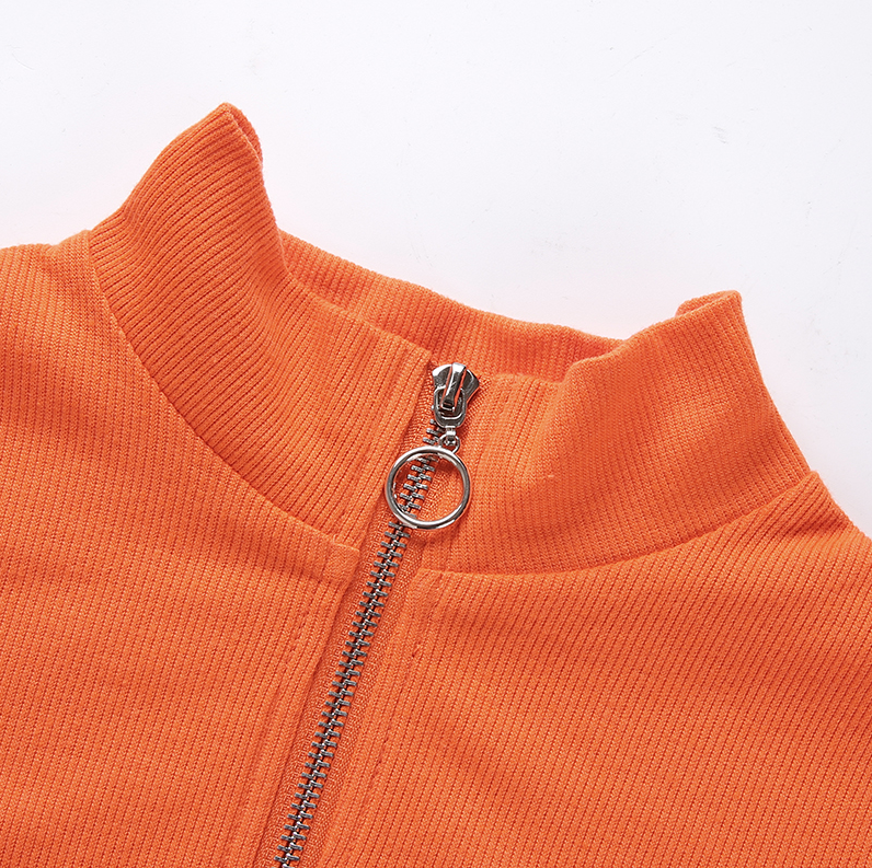O-ring Zip Up High Collar Orange Long Sleeve Top