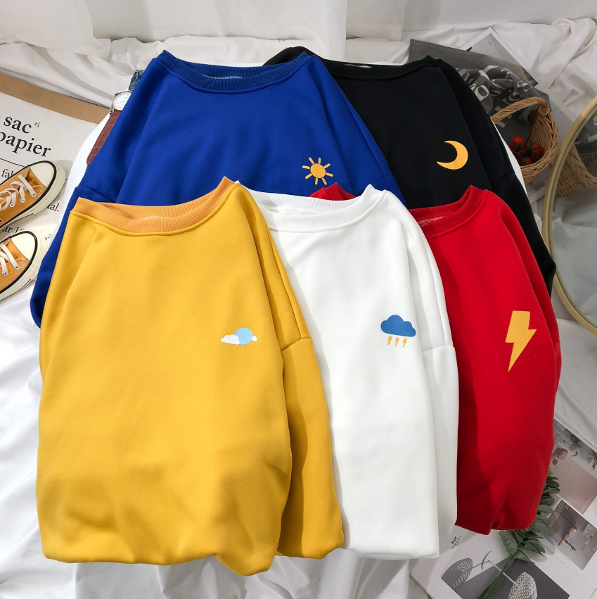 Fashion & Harajuku the weather sun/cloud/moon/lightning/rain sweatshirt.