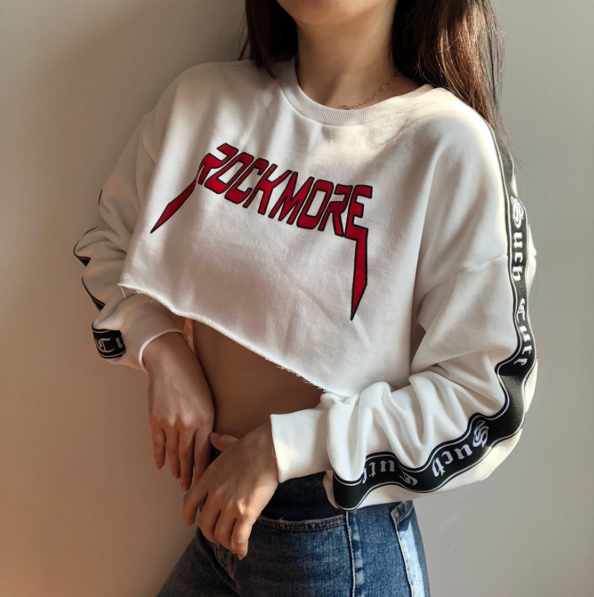 Fashion & Loose ROCKMORE printed long sleeve sweatshirt top.