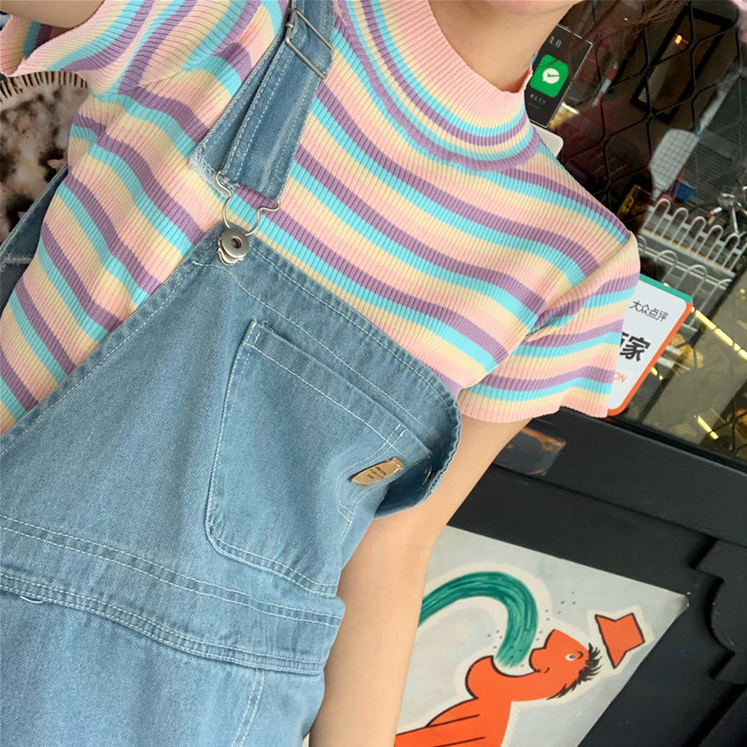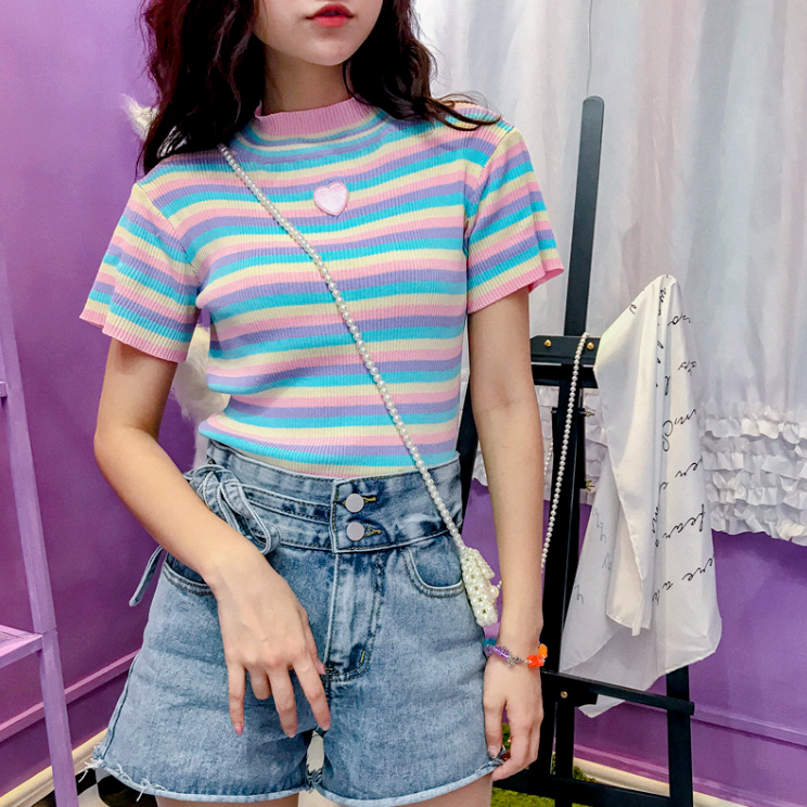 Harajuku Pastel Color Rainbow Stripe Knit Top
