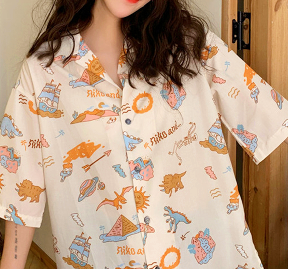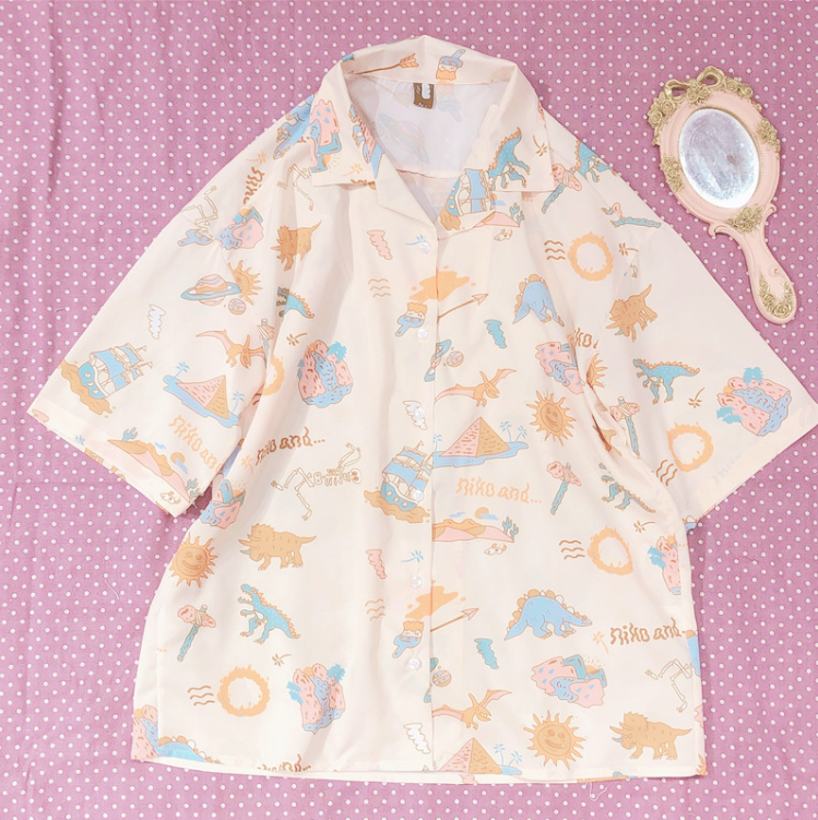 Harajuku & Cute dinosaur printed short sleeve blouse.