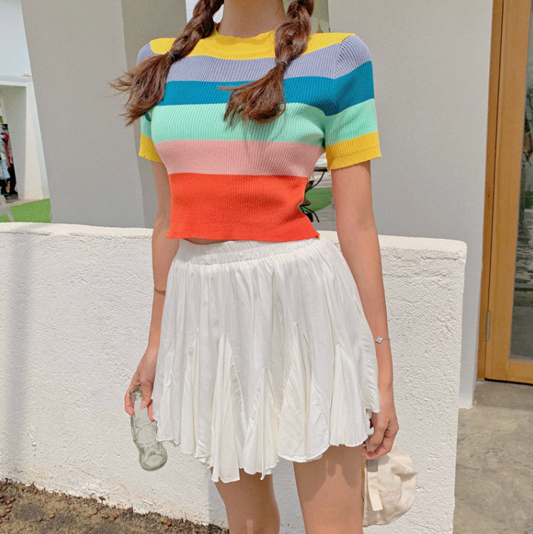 Rainbow Color Block Stripe Knit Top