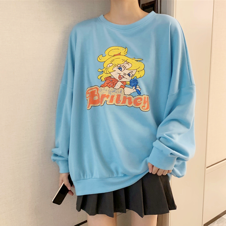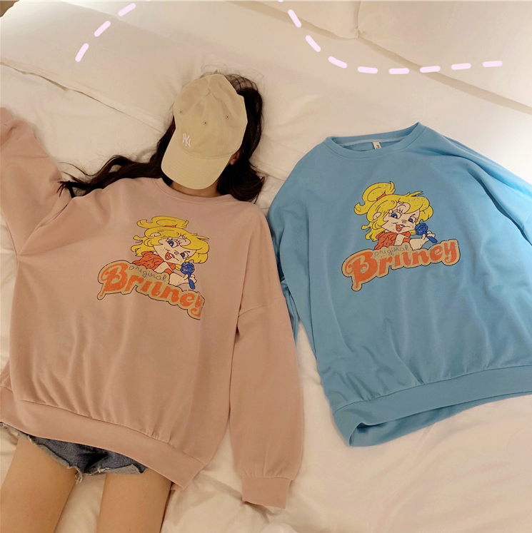 Cute & Harajuku cartoon girl printed pastel color sweatshirt.