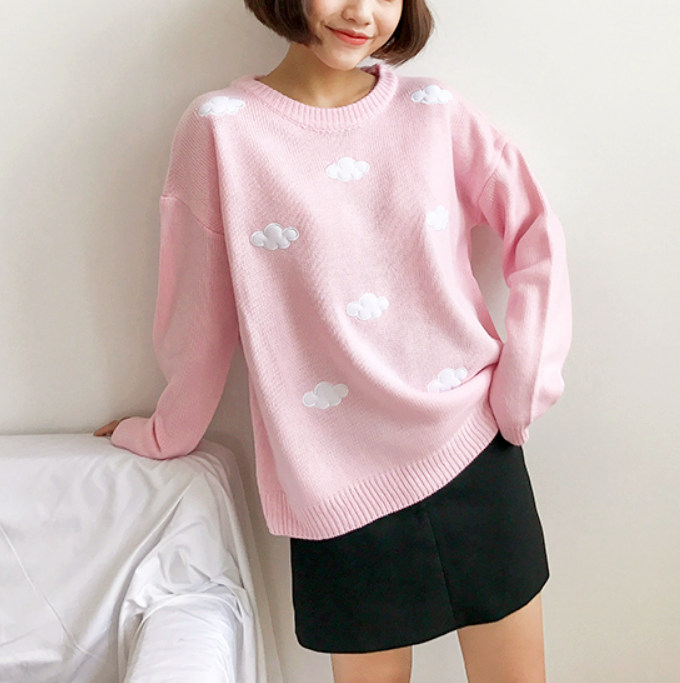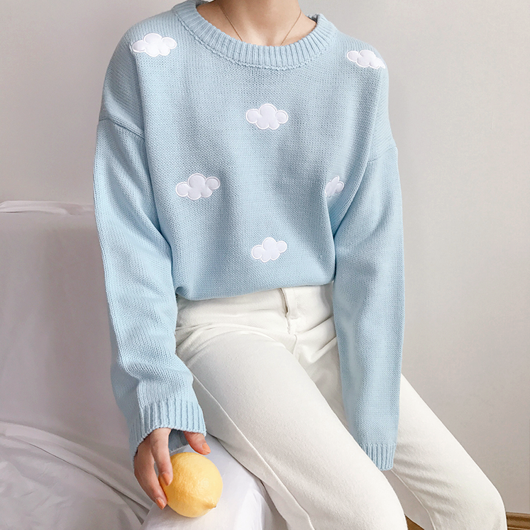Sweet & Harajuku cloud embroidery knitted top sweater.