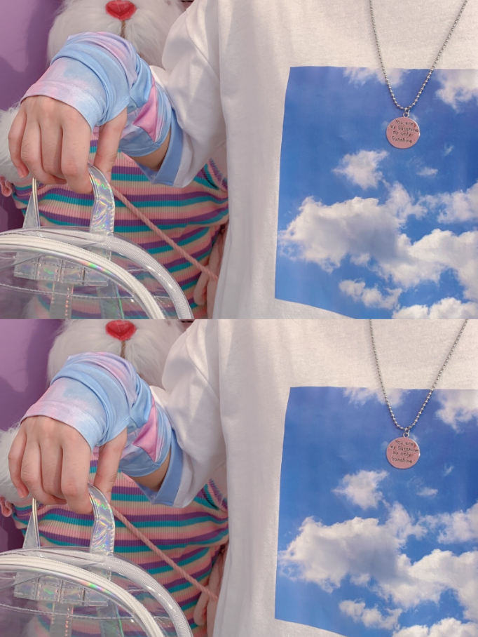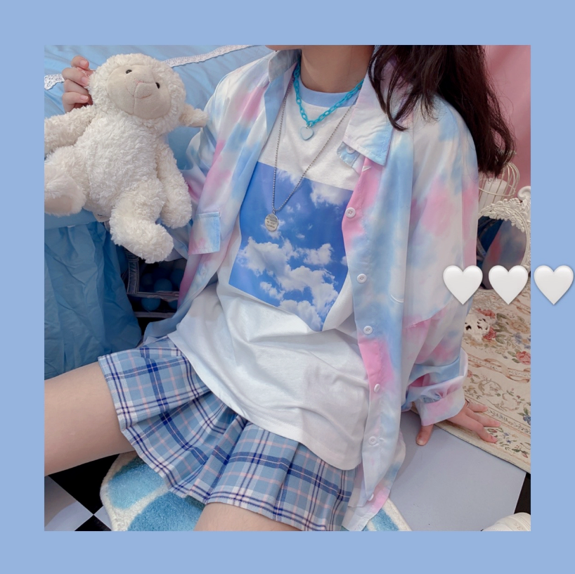 Fashion & Harajuku white cloud in blue sky short sleeve tee.