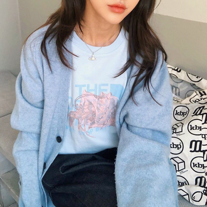 Harajuku pastel blue hermit crabs printed short sleeve tee.