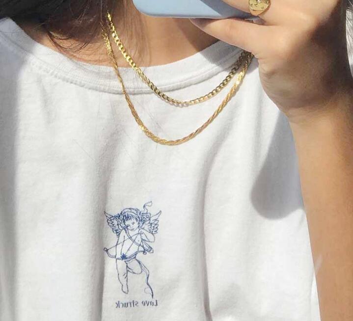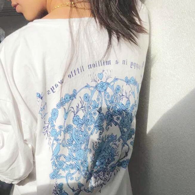 Retro & Chic floral flower angel print short sleeve t-shirt.