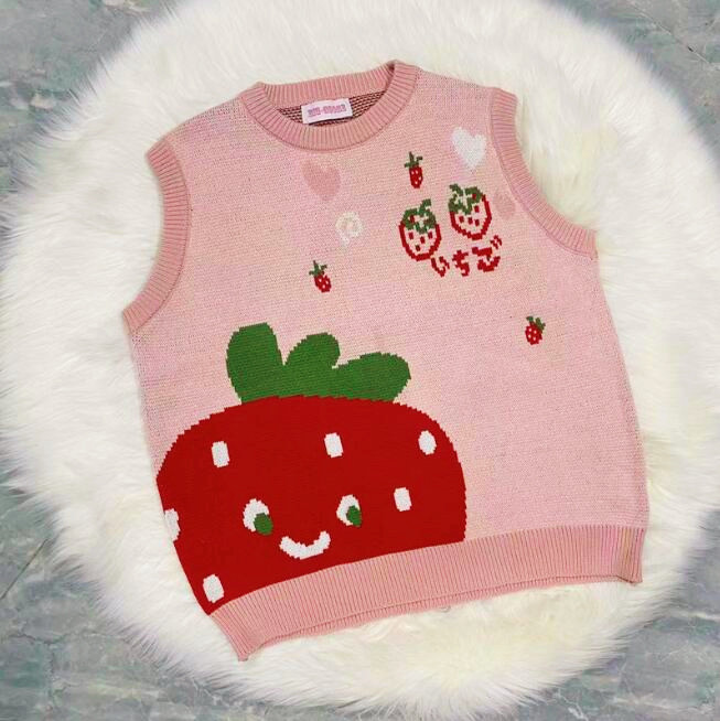 Cute Strawberry Pastel Pink Knitted Vest Sweater