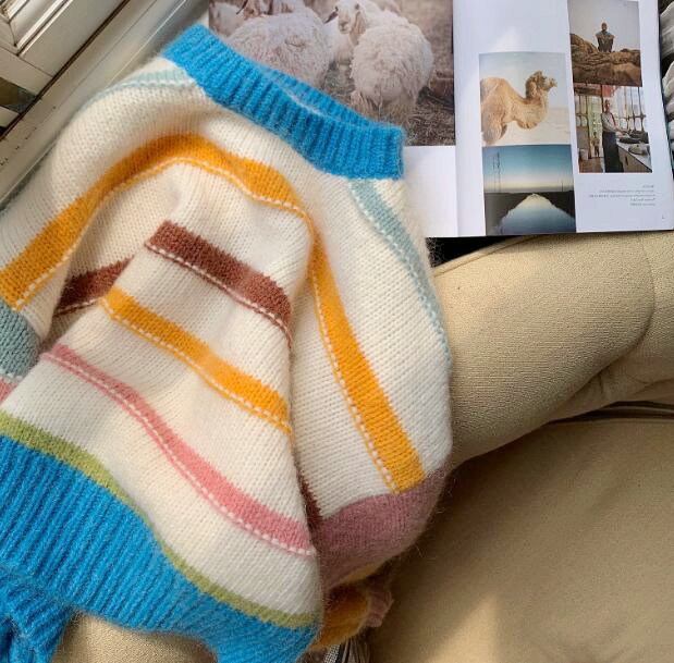 Pastel Color Block Striped Mohair Wool Pullover Sweater