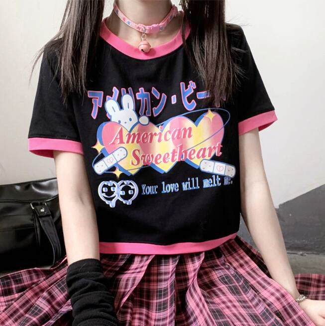 Fashion & Harajuku American Sweetheart bunny printed short sleeve t-shirt.