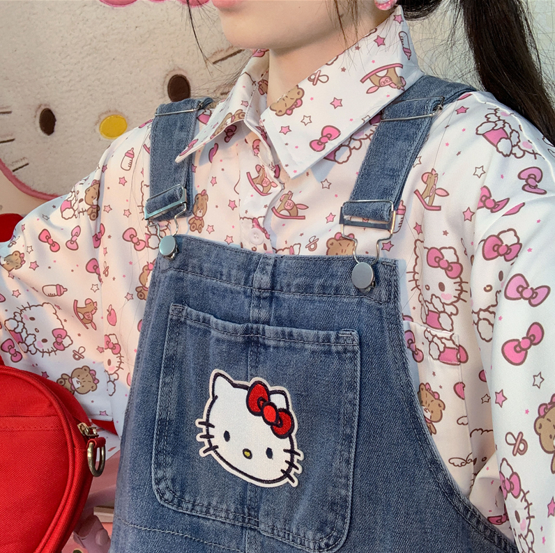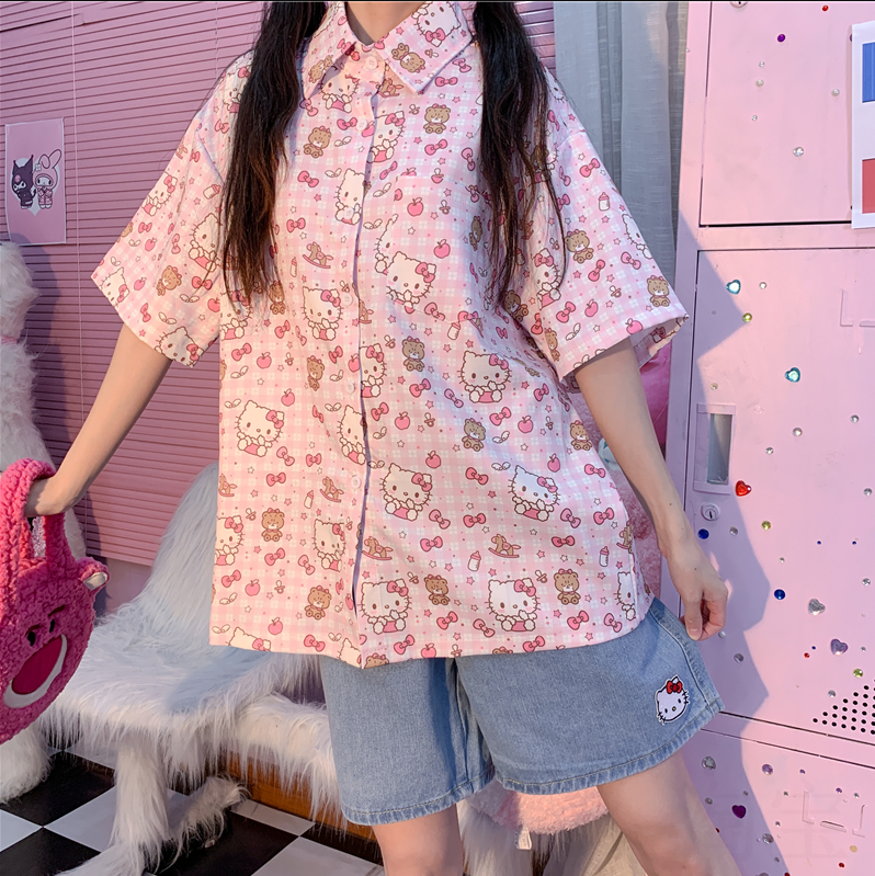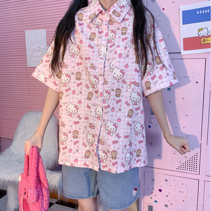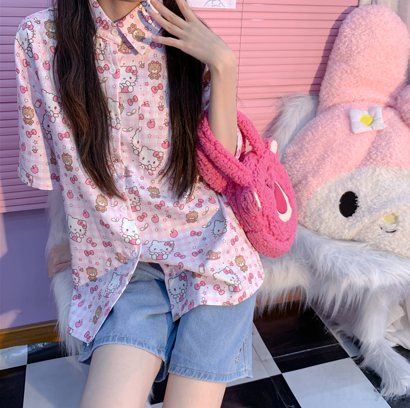 Sweet & Harajuku kitty cat printed short sleeve blouse shirt.