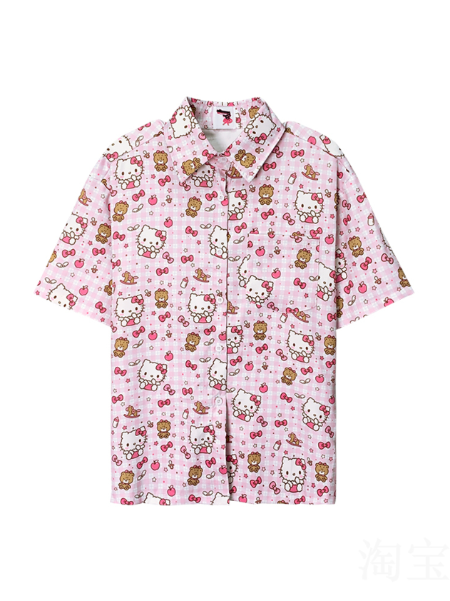 Kitty Cat Full Print Short Sleeve Blouse Shirt