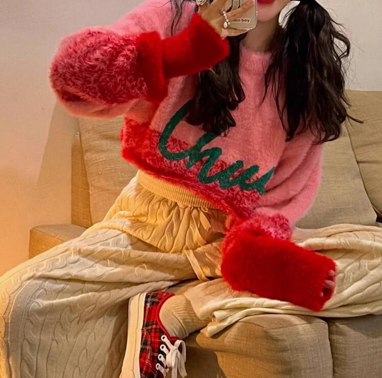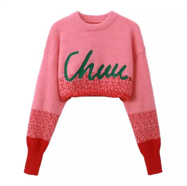Sweet & Harajuku high waist Chuu embroidery pullover knitted sweater.