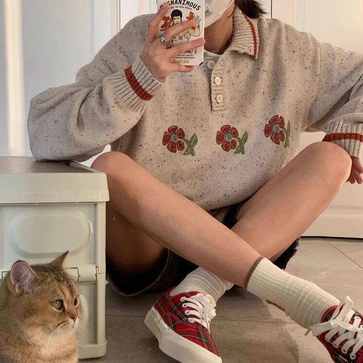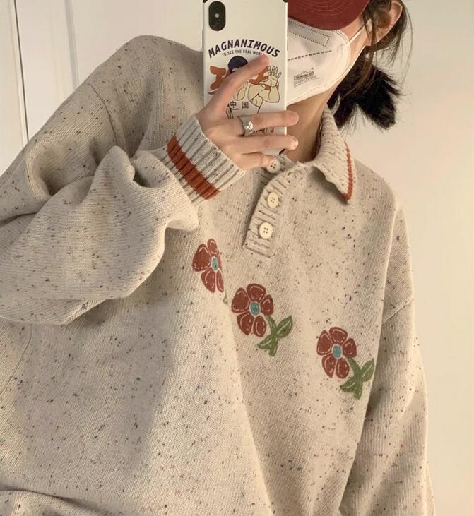 Vintage Flower Lapel Pullover Knit Sweater
