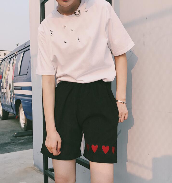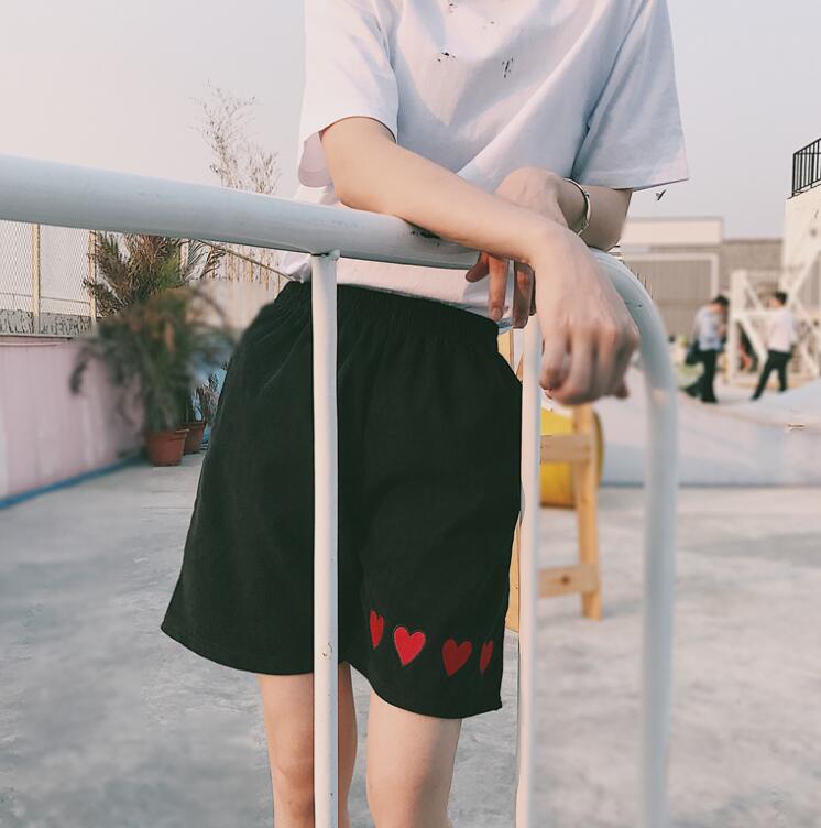Fashion & Harajuku heart embroidered corduroy shorts.