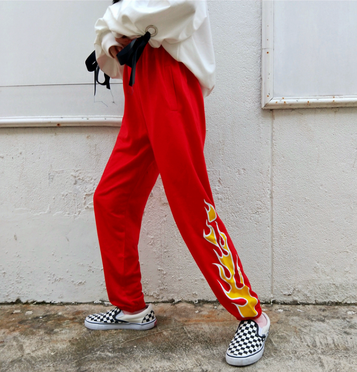 Fashion & Harajuku flame jogger pants.