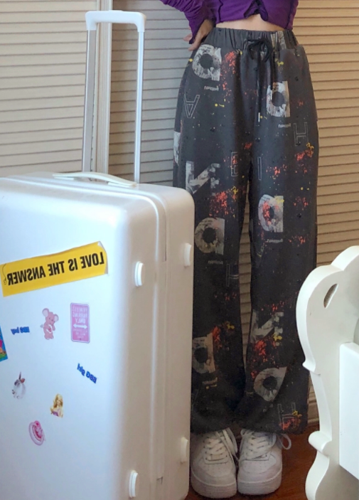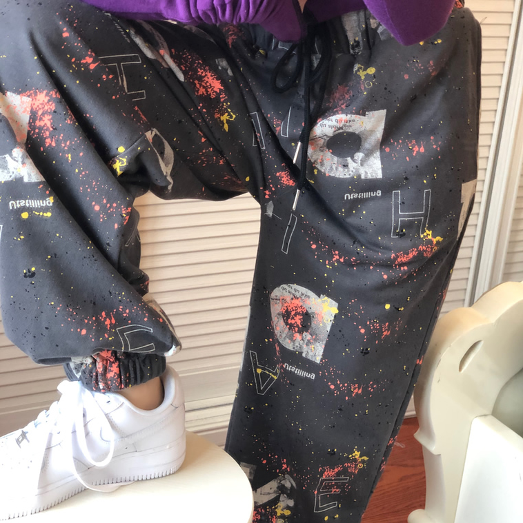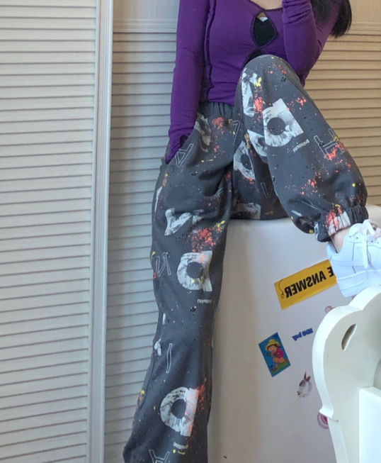 Fashion & Harajuku colorful spattering dye letters printed casual pants, joggers.