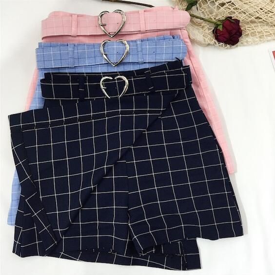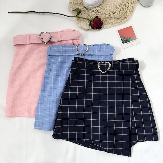Fashion & ulzzang irregular plaid skirt with heart belt fit for girls.