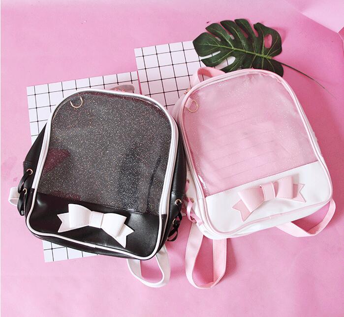 This stylish & sweet transparent backpack is perfect for shopping, school ect.