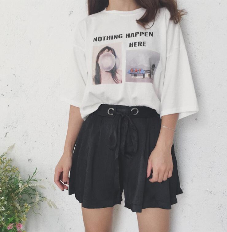 Fashion & Harajuku lace up wide leg loose pleated short.