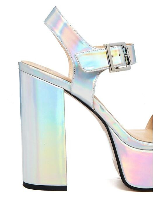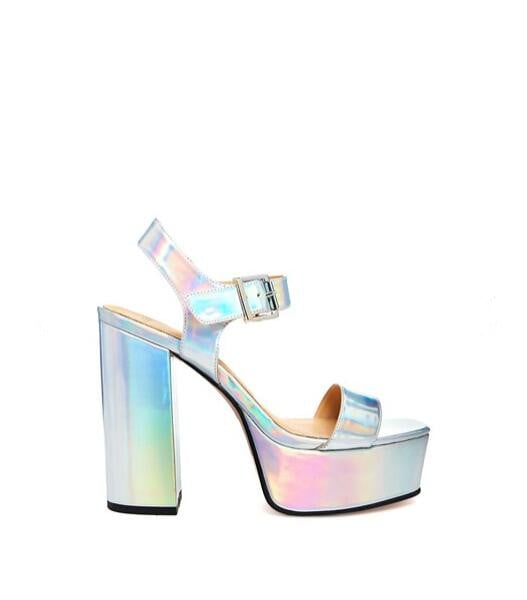 Chic & Harajuku holographic hologram high heel platform sandals shoes.