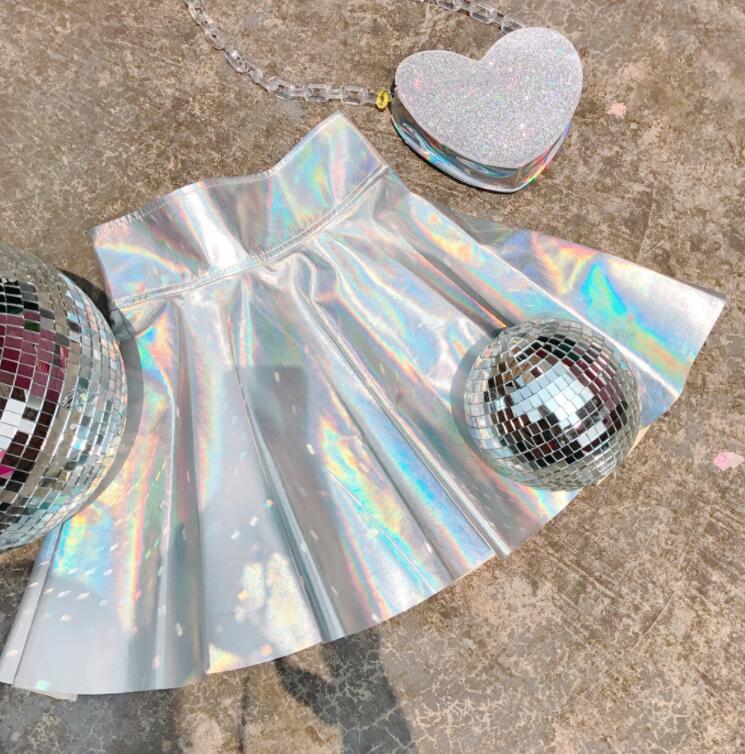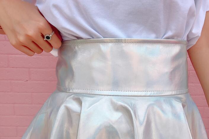 Fashion & Harajuku metallic hologram high waist skirt with zip.