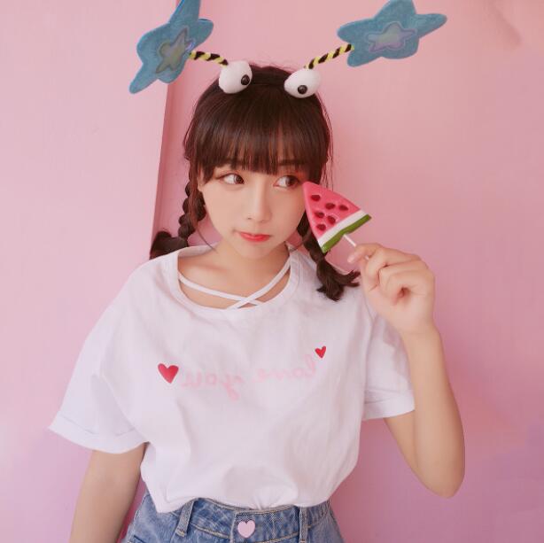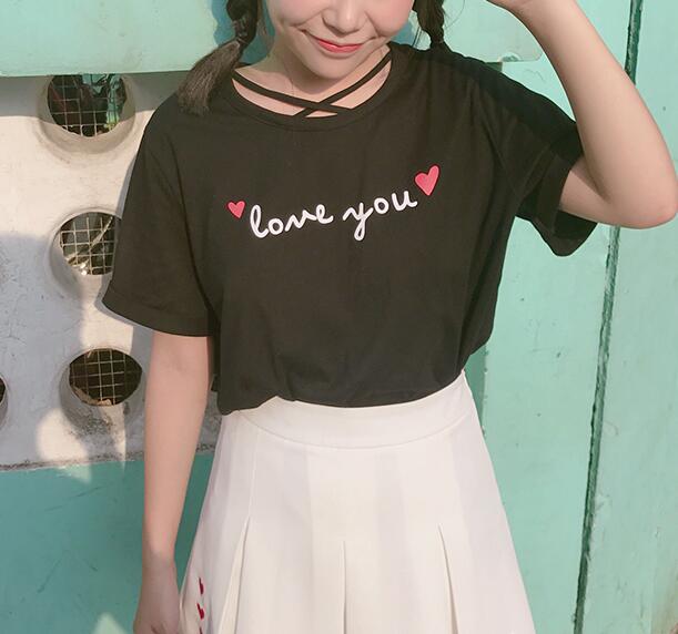 Sweet & Harajuku red heart across tee in black and white color.