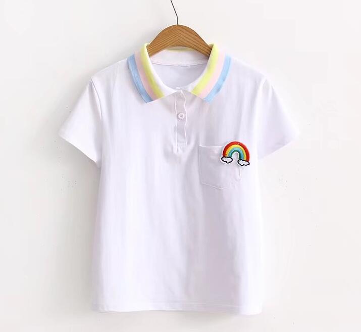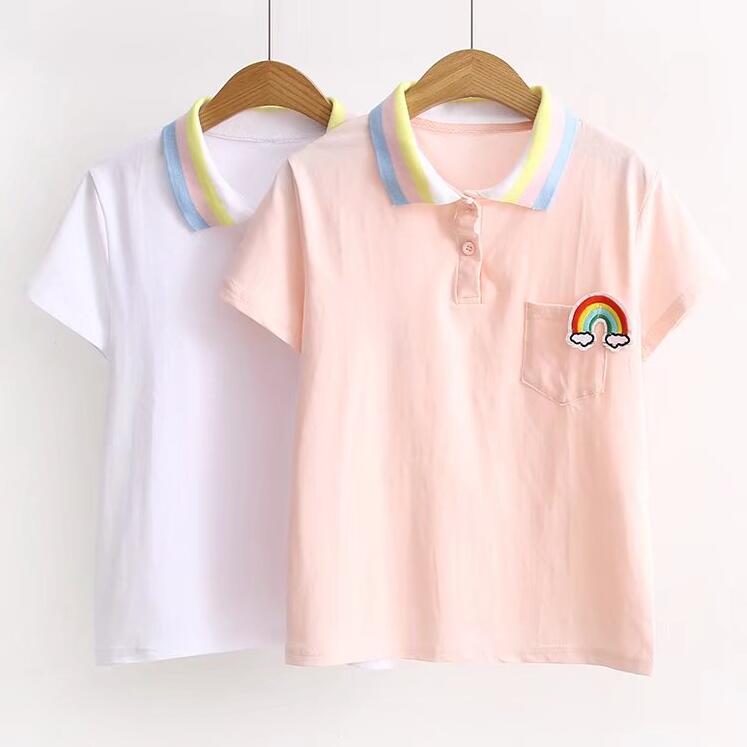 Fashion & Harajuku rainbow polo shirt for girls, women.
