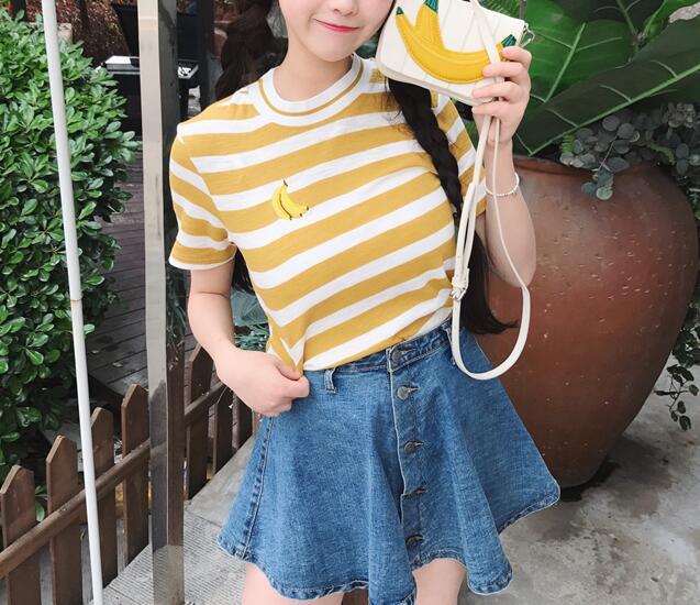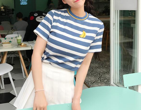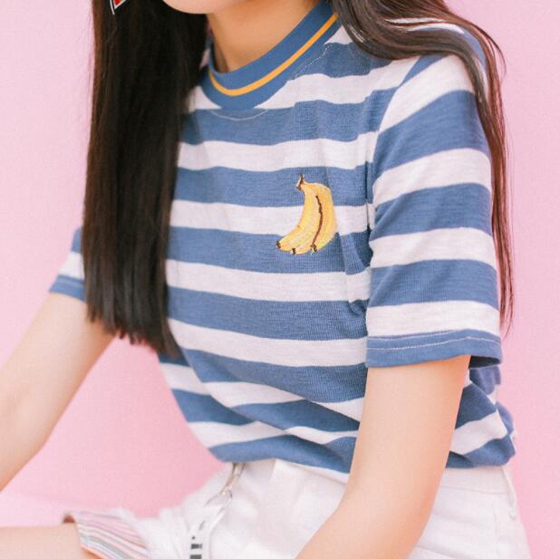Fashion & Harajuku banana embroidered striped t-shirt.
