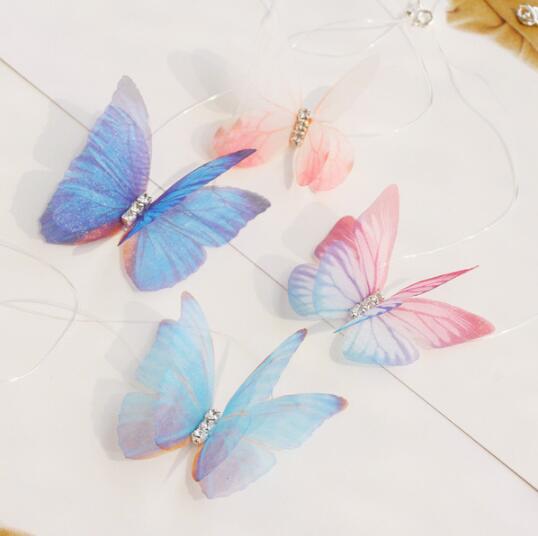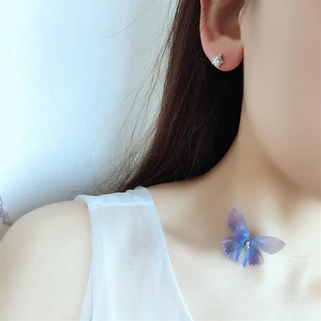 Elegant & Fashion crystal colorful 3D yarn butterfly chokers invisible fish-line.
