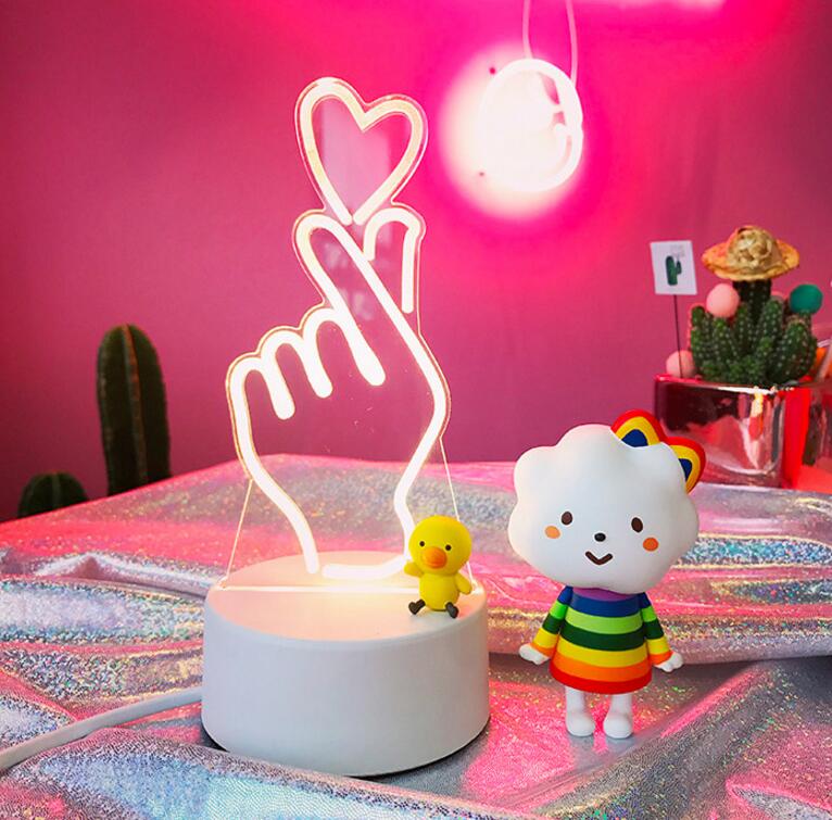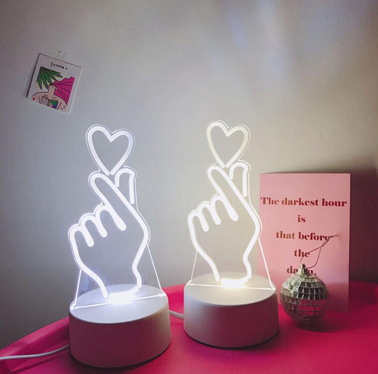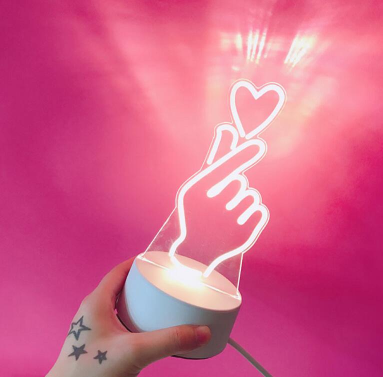 Harajuku & Fashion fingers heart LED night light for home decor, 3 different colors changing by every-time turn on/off.