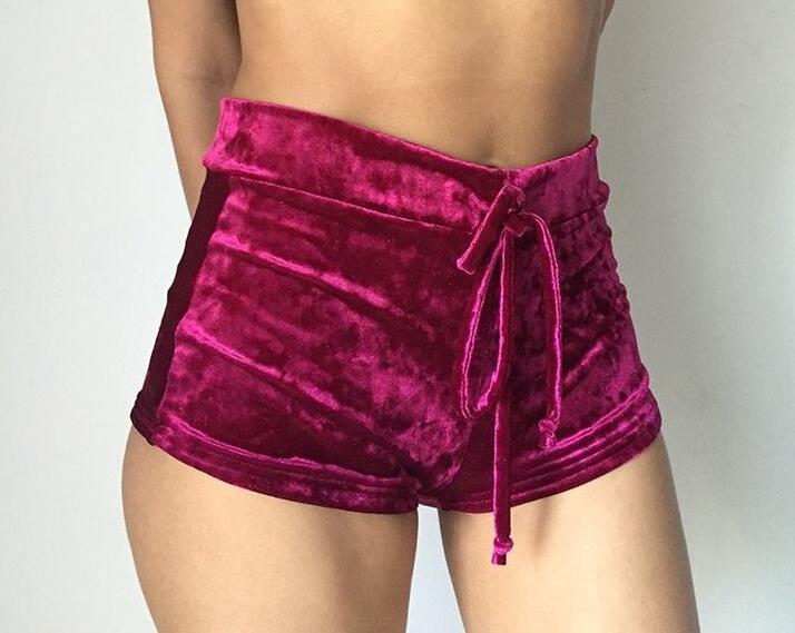 Fashion & Harajuku velvet drawstring summer hot shorts.