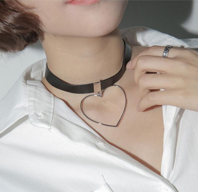 Chic Heart Pendant Leather Choker