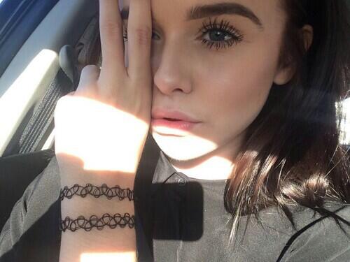 Punk & Harajuku black tattoo like elastic choker bracelet and ring jewelry set.