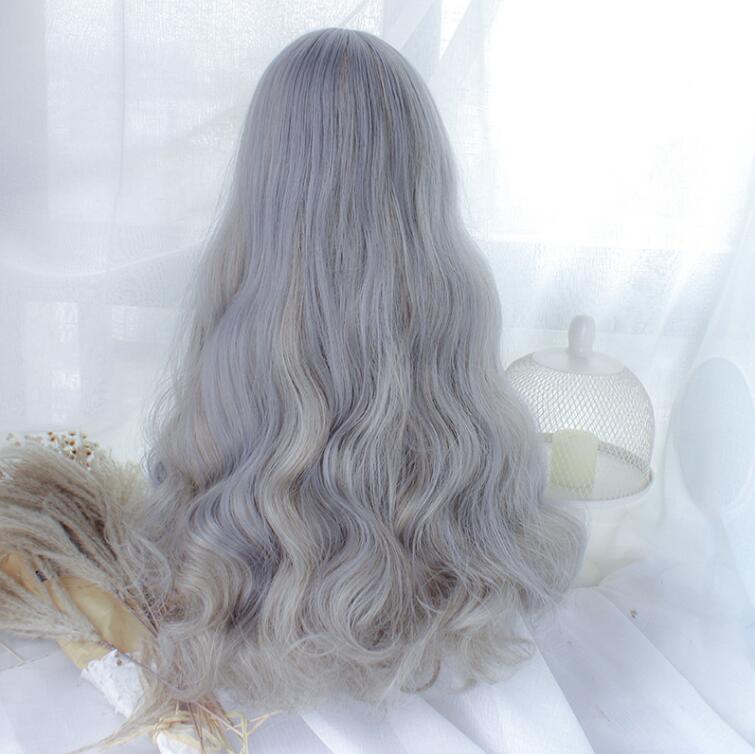 Harajuku pastel purple and grey ombre long curly cosplay wig.
