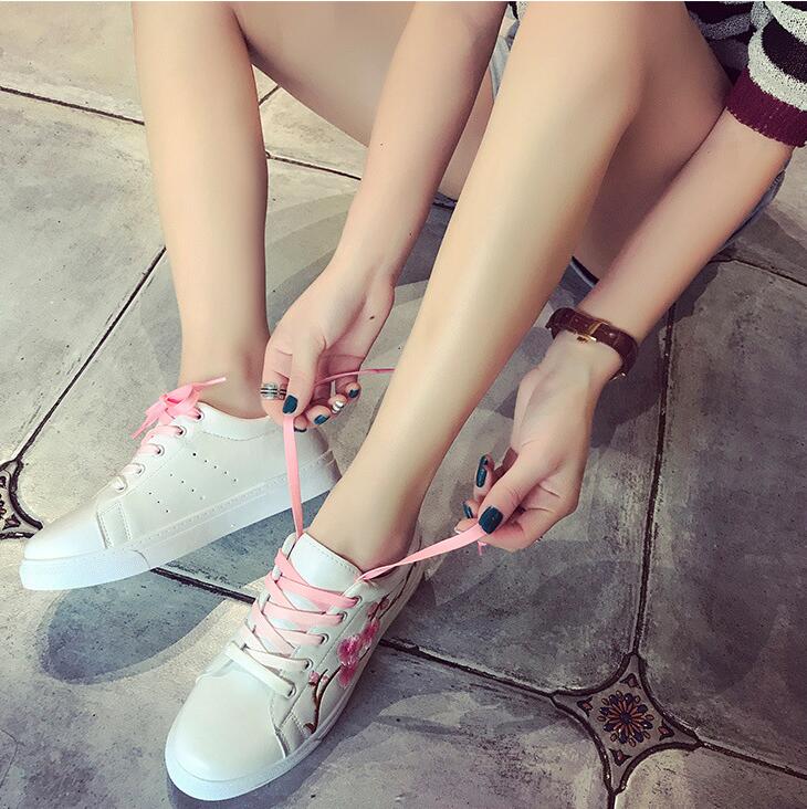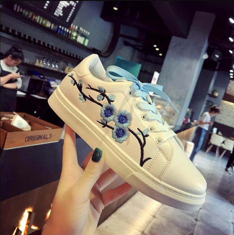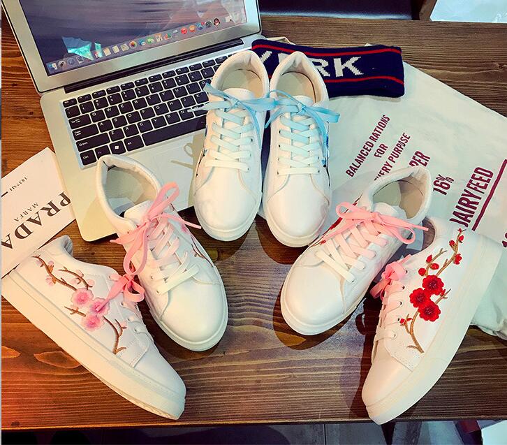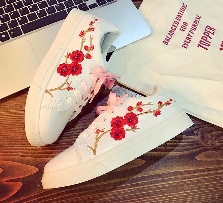 Comfortable & Harajuku plum blossom floral embroidered sneakers.