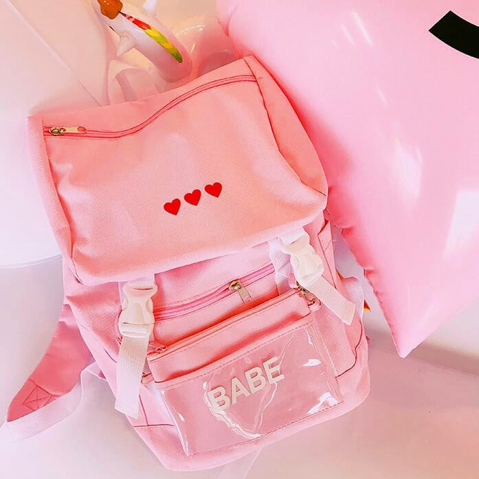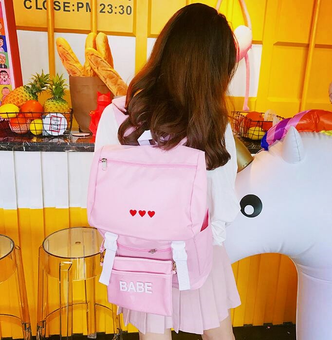 Harajuku Red Heart Backpack with Purse