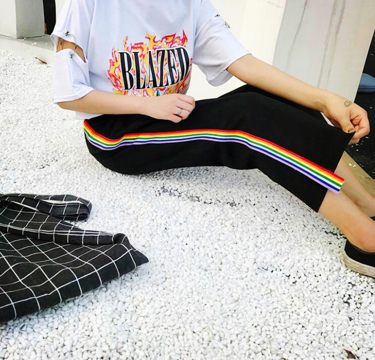 *Free Shipping* Rainbow Striped Casual Pants in Black