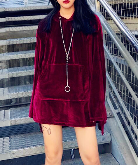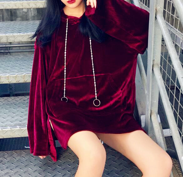 Chic & Fashion long sleeve velvet solid oversize hoodie.