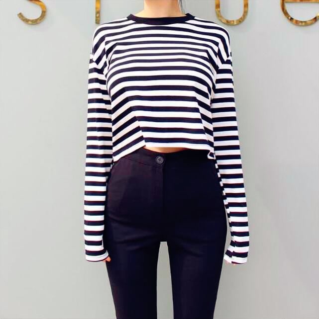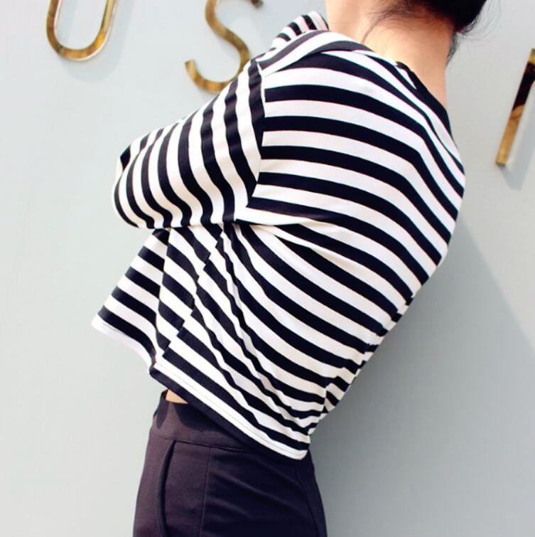 Harajuku & Fashion black white striped long sleeve cropped t-shirt.